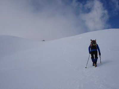 Nos acercamos hasta el collado de Transmancondiu y empezamos a subir por el itinerario de verano, pero la nieve era "sopa", no tenía consistencia... así que cambiamos de estrategia y comenzamos a subir por la canal que está encima del refugio, donde la nieve estaba un poco más dura, pero arriba se ponía nuevamente como sopa, así que decidimos darnos la vuelta y dejarlo para otro día.